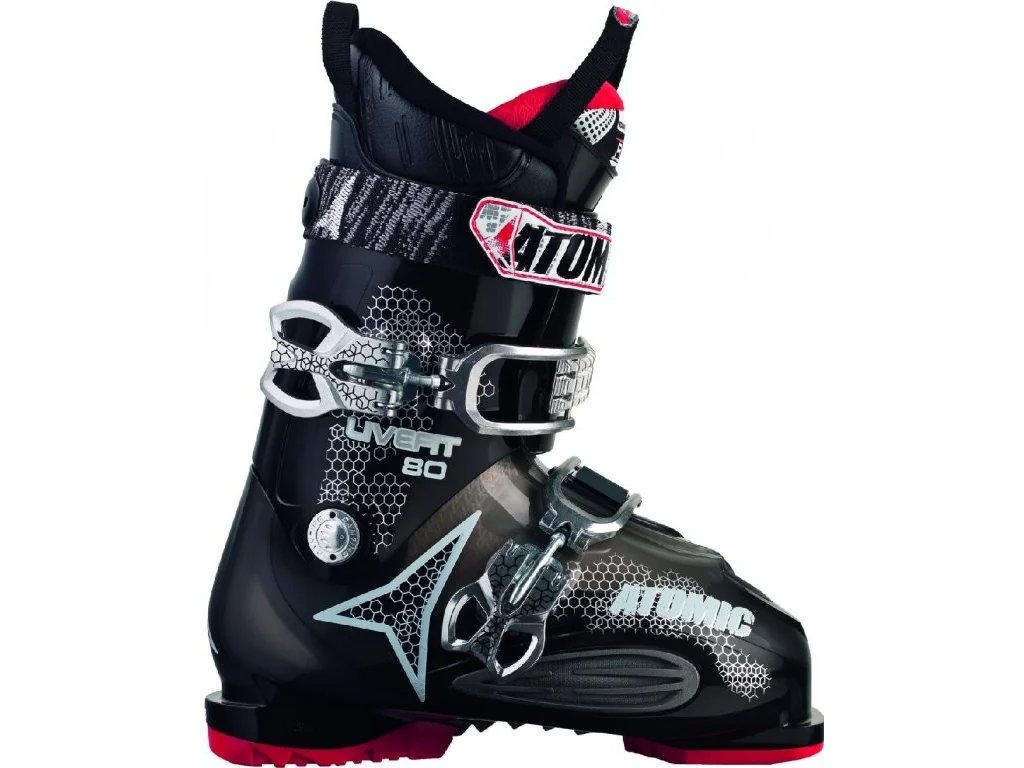 Atomic LF 80 2011/2012 Bota s technologií Live fit. Jde o to, že bota je pružná a mění tak šířku od 102–106 mm v nejširší části chodilda má jen dvě masivní přezky pro snadné nazouvání, ale díky masivní pásce na suchý zip a zužení v oblasti paty až na úroveň, kterou můžeme spatřit u řady Hawx perfektně sedí na noze a je velice pevná. Má také o 8mm širší komín než řada B- tech. Jde o velmi tvrdou, ale zároveň pohodlnou botu s kterou budou spokojeni sportovní lyžaři. Parametry Atomic LF 80 2011/2012 Flex Index 80 Liner ASY Sport Liner Přesky Mega Buckle Velcro pás 35 mm Power Strap Vnitřní botička 102-6 mm Live Fit Atomic