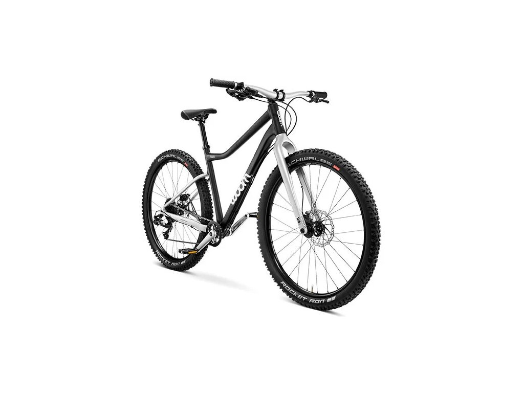 SPECIFIKACE: Rám: hydroformovaný hliníkový s pevnou zadnou osou 12x135mm Vidlice: Karbonová 26" s pevnou osou 15x100mm Pláště: Schwalbe Rocket Ron 26 x 2,25 ADDIX Přehazovačka: SRAM X5 Řadič: SRAM X5 Představec: 31,8mm Flip Flop Style Řídítka: 640mm Kazeta: 9sp, 11-36T Převodník: 28T Brzdy: Kotoučové hydraulické Promax 160/140mm Hmotnost: 9,5kg KARBONOVÁ VIDLICE Velmi lehká a velmi kvalitní – karbonová vidlice nabízí maximální stabilitu při minimální hmotnosti. Propletená uhlíková vlákna zaručují optimální torzní tuhost pří řízení a brzdění. Ani nejprudší jízdy z kopce tak nejsou problém. HYDRAULICKÉ KOTOUČOVÉ BRZDY Kotoučové brzdy s dobrým dávkováním brzdného účinku v kombinaci s dětskými brzdovými páčkami pro malý dosah prstů zvyšují bezpečnost a kontrolu i v obtížném terénu a v mokrých podmínkách. PŘEVODNÍK NARROW WIDE Speciální převodník Narrow Wide zaručuje spolehlivé vedení řetězu – pro maximální požitek z jízdy i v náročném terénu. PLÁŠTĚ SCHWALBE ROCKET RON S ADDIX SPEED Velmi kvalitní pláště Schwalbe pro horská kola s gumovou směsí ADDIX SPEED nabízí optimální kombinaci nízkého valivého odporu, maximálního záběru, dobrého tlumení a dlouhé životnosti. HYDRAULICKY TVAROVANÝ HLINÍKOVÝ RÁM Ultralehký hliníkový rám z konifikovaných, hydraulicky tvarovaných trubek se vyznačuje sportovní geometrií s dlouhým rozvorem a plochým úhlem natočení řídítek. Hluboko posazený zlom horní trubky umožňuje v každé situaci rychlé sesednutí z kola. PŘEDSTAVEC FLIP FLOP Speciálně vyvinutý představec z kovaného hliníku zaručuje vysokou tuhost při minimální hmotnosti. Díky provedení Flip-Flop ho lze montovat i opačně a přizpůsobit tak výšku řídítek (+/- 15°).