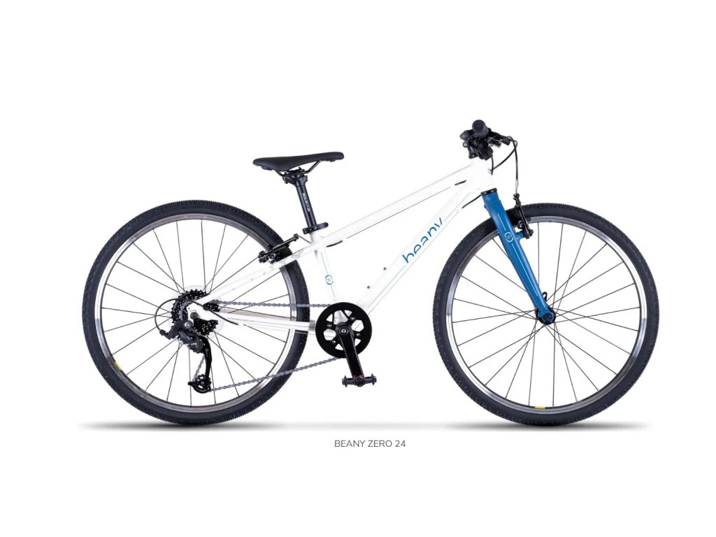 Popis Děti rostou jako z vody, co jim bylo vloni už letos neoblečou, to známe snad všichni. Bohužel to často platí i pro jízdní kola. Ještě na podzim jezdila Vaše ratolest na 20“ a nyní už potřebuje kolo větší? Jasnou volbou je Beany ZERO 24, které stejně jako většina kol v sortimentu Beany, představuje v dané kategorii nejlehčí dětské kolo na trhu s váhou kola pouhých 7,6 kg. V kategorii 24“ kol se už setkáváme se zkušenějšími cyklisty, mají něco naježděno a rádi zkoumají, co všechno se na kole dá provádět, co vyjedou, co přeskočí, poměřují své síly nejen s vrstevníky. Abychom jim jejich bádání zpříjemnili a zjednodušili, zúžili jsme průměr řídítek a brzdové páky vybrali velikostně vhodné pro stále malou dětskou ruku. Aby bylo dítě schopno bezpečně a rychle zabrzdit, nemusí přehmatávat nebo posouvat ruku na řídítkách, vše má doslova po ruce. Včetně osmistupňového páčkového řazení. Pro zařazení jiného převodu není zapotřebí vyvinout sílu, jako je tomu obvykle u otočných systémů, s páčkovým řazením jde převod změnit snadno a bez většího úsilí. Dítě se tedy stále může věnovat jízdě a mít řídítka plně pod kontrolou. I u Beany ZERO 24 je geometrie vyvíjena na míru dětem. Zajišťuje zdravý a pohodlný posed dítěte za řídítky, což potvrzují i dětští fyzioterapeuté, se kterými na vývoji kol spolupracujeme. V případě modelu ZERO 24 byl cíl naprosto jasný! Lehké, pohodlné a skvěle ovladatelné dětské kolo. To splňuje do nejmenších detailů! Hliníkový super lehký rám, hliníková pevná vidlice a komponenty uzpůsobené potřebám a možnostem dětí. Skvěle poslouží malým cyklistům při vyjížďkách pro zábavu. Stejně tak bez problémů splní požadavky těch, kteří vyžadují od kola maximální výkon při dětských závodech, spokojeni budou všichni - malý závodník i jeho rodiče. Na kolo je možné použít pláště, až do šířky 2,25"