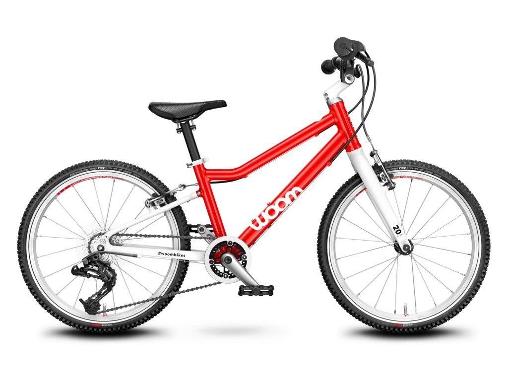 Popis Woom 4 Red je designové dětské kolo vhodné pro 115 až 130 centimetrů vysoké cyklisty ve věku od 6 do 8 let. Jeho základem je lehký hliníkový rám doplněný pevnou přední vidlicí a dvacetipalcovými zapletenými koly, která tomuto pouličnímu raubíři dodávají více než dostatečnou jízdní dynamiku. Možnosti použití rozšiřuje osmirychlostní zadní přehazovačka, která zpříjemní jízdu do kopce a usnadní zdolávání terénních překážek. Včasné zastavení zaručí dvojice ráfkových brzd s páčkami uzpůsobenými pro snadné ovládání. Kvalitní základ… Základem tohoto kola je lehký hliníkový rám s geometrií, jež byla navržena s ohledem na specifické potřeby malých cyklistů. Bezpečí je v tomto případě na prvním místě, nezapomnělo se ovšem ani na to, že jízda na kole musí být především zábavná. Rám je díky nízko položenému těžišti a na míru upravenému předsazení vidlice velice stabilní, přes to přese všechno však zůstává stále snadno ovladatelný, a to nejen v zatáčkách. Nástup za řídítka usnadní výrazně snížená horní rámová trubka. Samozřejmostí je vícevrstvý lak, který snadno odolá drtivé většině začátečnických karambolů. …a dokonale promyšlené detaily Dětská kola Woom jsou promyšlená do posledního detailu. Ať už hovoříme o brzdových pákách uzpůsobených pro drobné dětské ruce, o otočném řazení, které dětem usnadňuje změnu převodů, nebo o představci s uchycením natočeným pod řídítka tak, aby se o něj nikdo nemohl poranit, vše je uzpůsobeno pro snadnou ovladatelnost a maximální bezpečí. Pozornost byla věnována také kontaktním bodům, tedy především sedlu a gripům, jež se významnou měrou podílejí na celkovém pocitu z jízdy, a v neposlední řadě také klikám a pedálům. Kliky jsou navrženy tak, aby odpovídaly mechanice pohybu malých cyklistů, a to ať už je řeč o jejich délce, o vzdálenosti mezi oběma klikami, nebo o počtu zubů na převodníku. Parametry Rám Woom, hliníkový, materiál Aluminum alloy 6061 Vidlice Woom, hliníková, materiál Aluminum alloy 6061, 1" sloupek Kliky Woom, hliníkové, délka 110 mm, převodník s 29 zuby Přehazovačka SRAM X4, 8 rychlostí Řadící páčky SRAM Grip Shift, otočné, 8 rychlostí Kazeta SRAM, 8 rychlostí, rozsah 11-32 zubů Řetěz SRAM Brzdy Mini V-Brake Brzdové páky Mini V-Brake Ráfky Woom Soopa-Doopa-Hoops, hliníkové, 20“ Náboje Hliníkové, průmyslová ložiska Dráty Ocelové Pláště Kenda Small Block, rozměr 1.5x20", 60 TPI Pedály Platformové, plastové Řídítka Woom, hliníková, šířka 560 mm Představec Woom, hliníkový, délka 40 mm, sklon +10° Hlavové složení Semi-integrované, pro 1" sloupek Sedlo Woom, ocelové ližiny Sedlovka Woom, hliníková Hmotnost 7,60 kg (bez pedálů) Balanční kolečka Ne